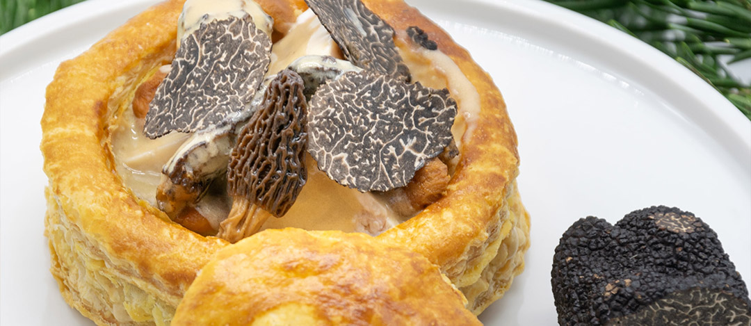 Vol-au-vent au ris de veau, à la crête de coq et à la truffe du Périgord